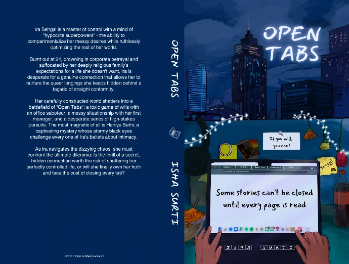 This project involved designing a book cover for author Isha Surti’s novel Open Tabs, a workplace romance.